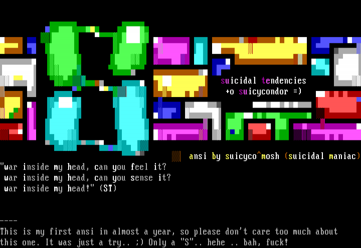 ansi by suicycomosh suicidal maniacwar inside my head, can you feel it?