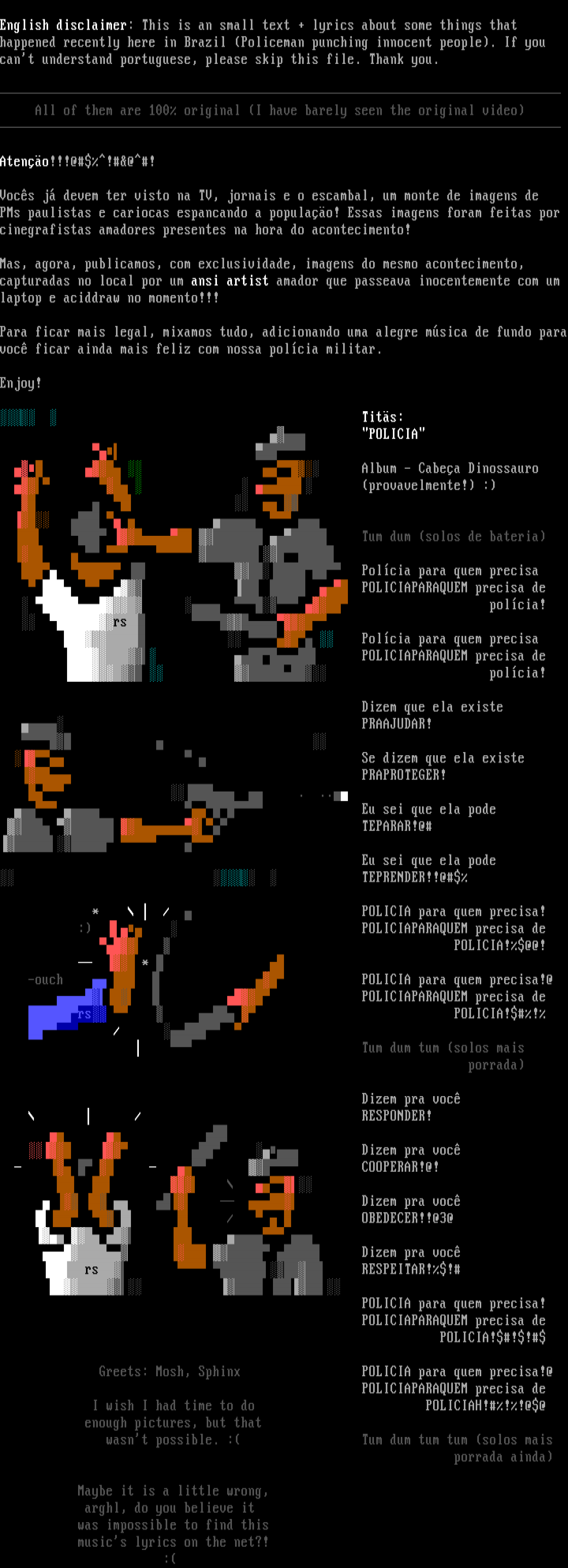 Greets: Mosh, Sphinx POLICIA para quem pr