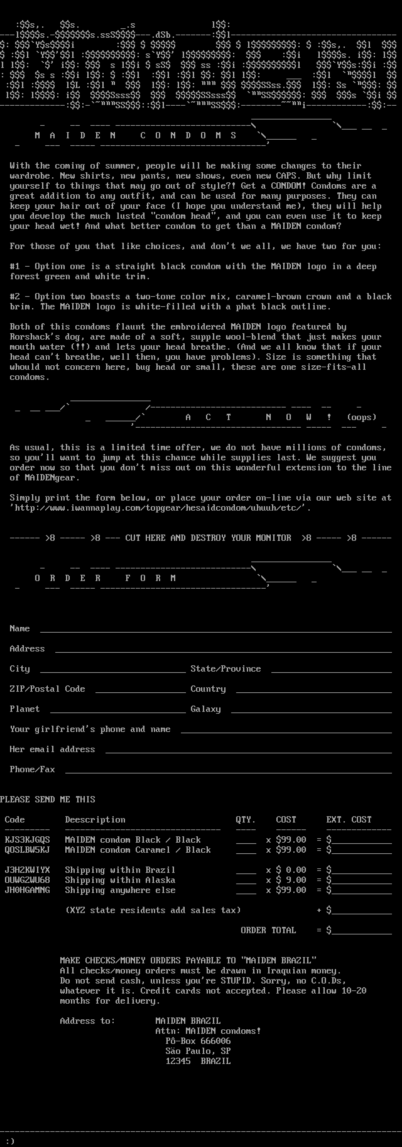 Attn: MAIDEN condoms!