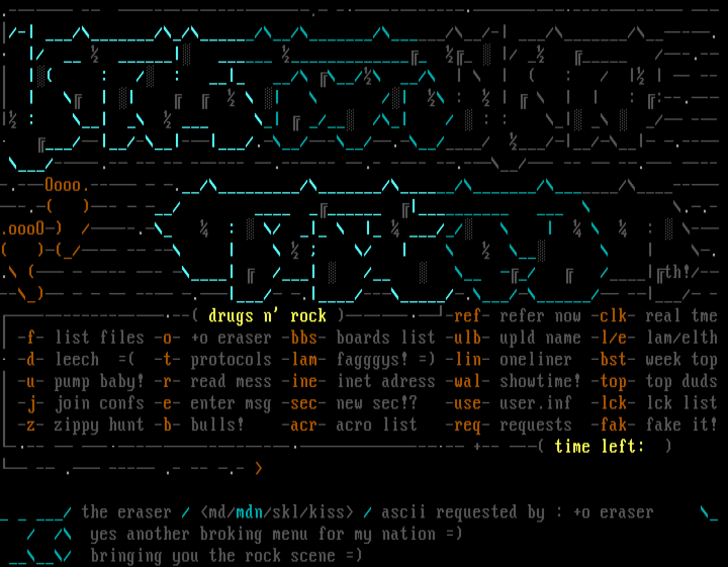 / the eraser / md/mdn/skl/kiss / ascii requested by : +o eraser