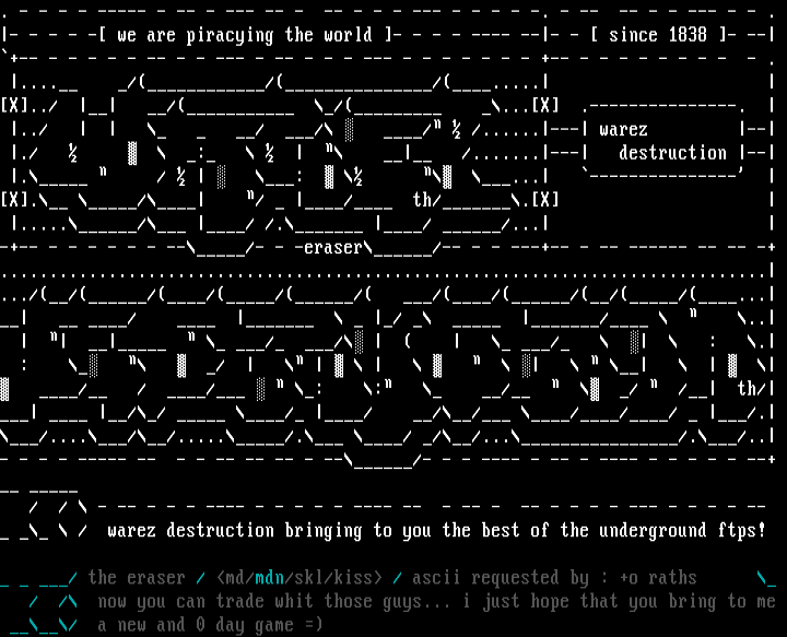 / the eraser / md/mdn/skl/kiss / ascii requested by : +o raths