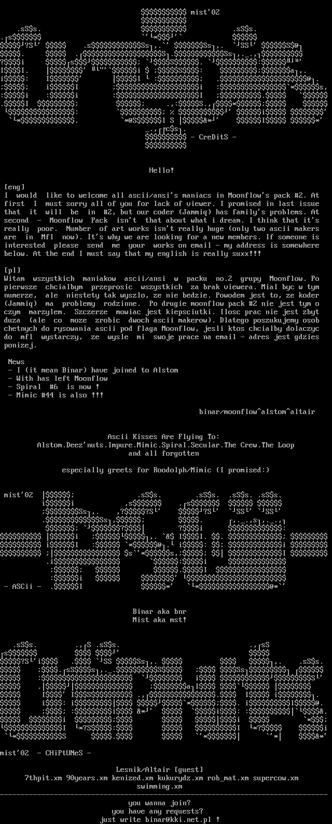Witam wszystkich maniakow ascii/ansi w packu no.2 grupy Moonflow. Po