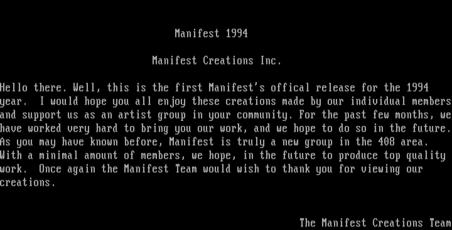 Hello there. Well, this is the first Manifests offical release for the 1994