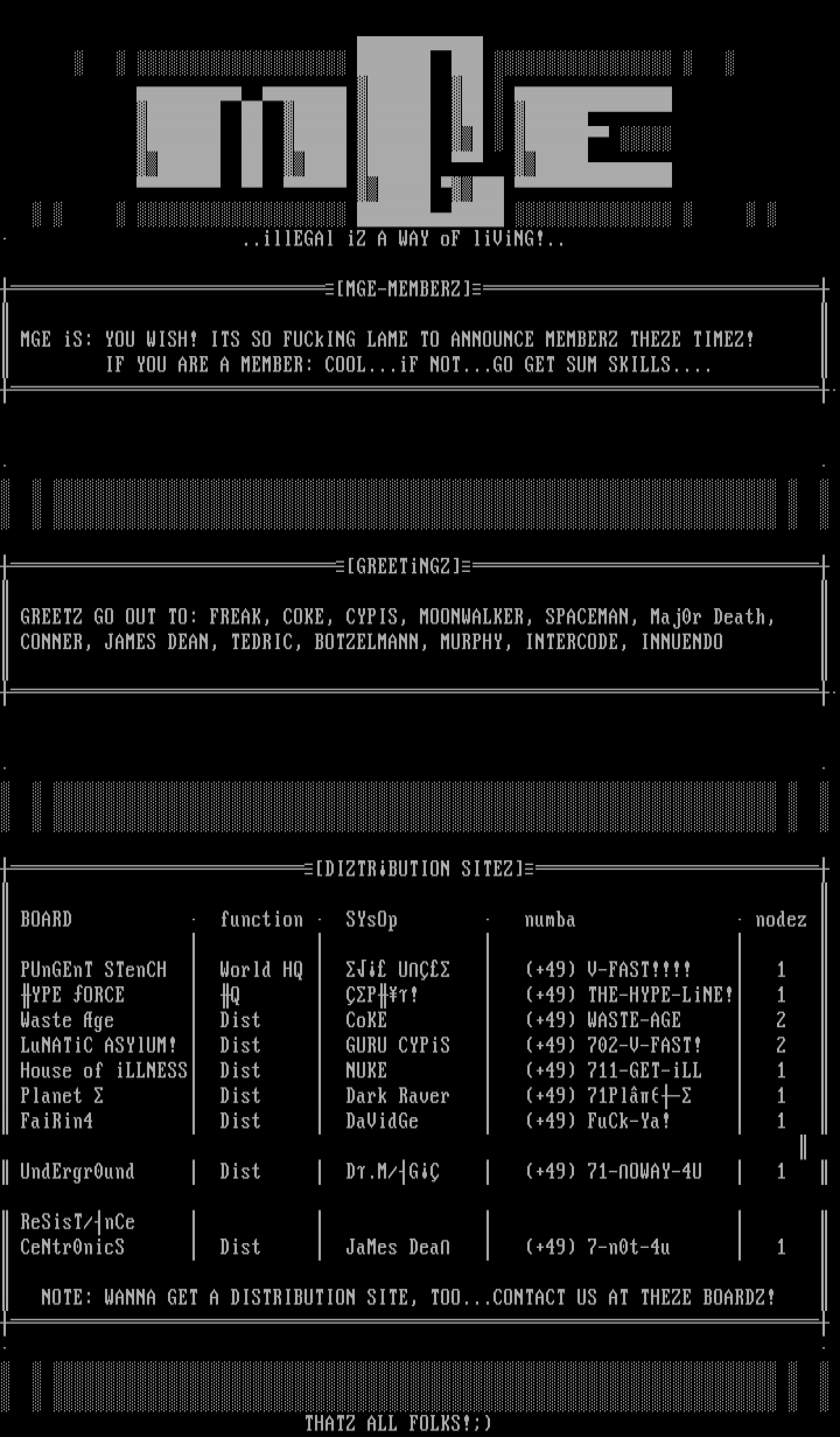 GREETZ GO OUT TO: FREAK, COKE, CYPIS, MOONWALKER, SPACEMAN, Maj0r Death,
