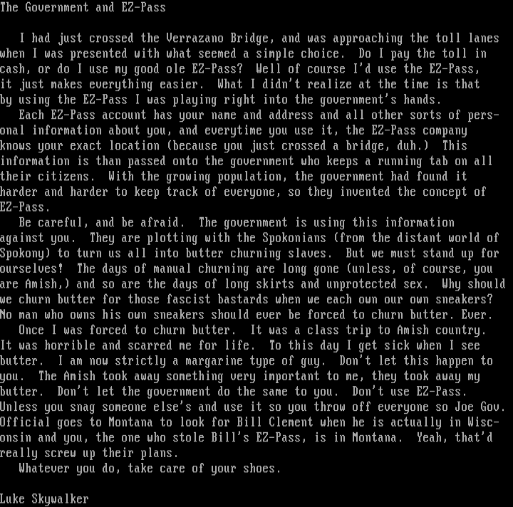 butter. Dont let the government do the same to you. Dont use EZ-Pass.