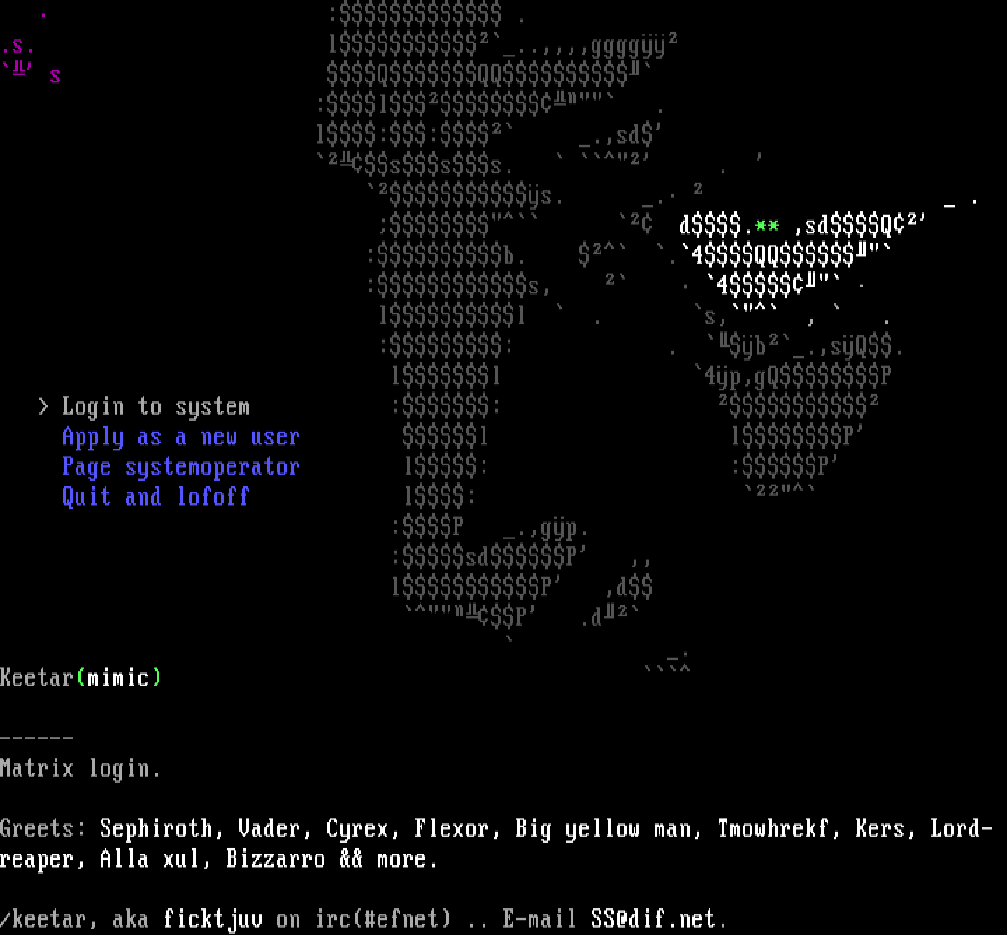 /keetar, aka ficktjuv on ircefnet .. E-mail SS@dif.net.