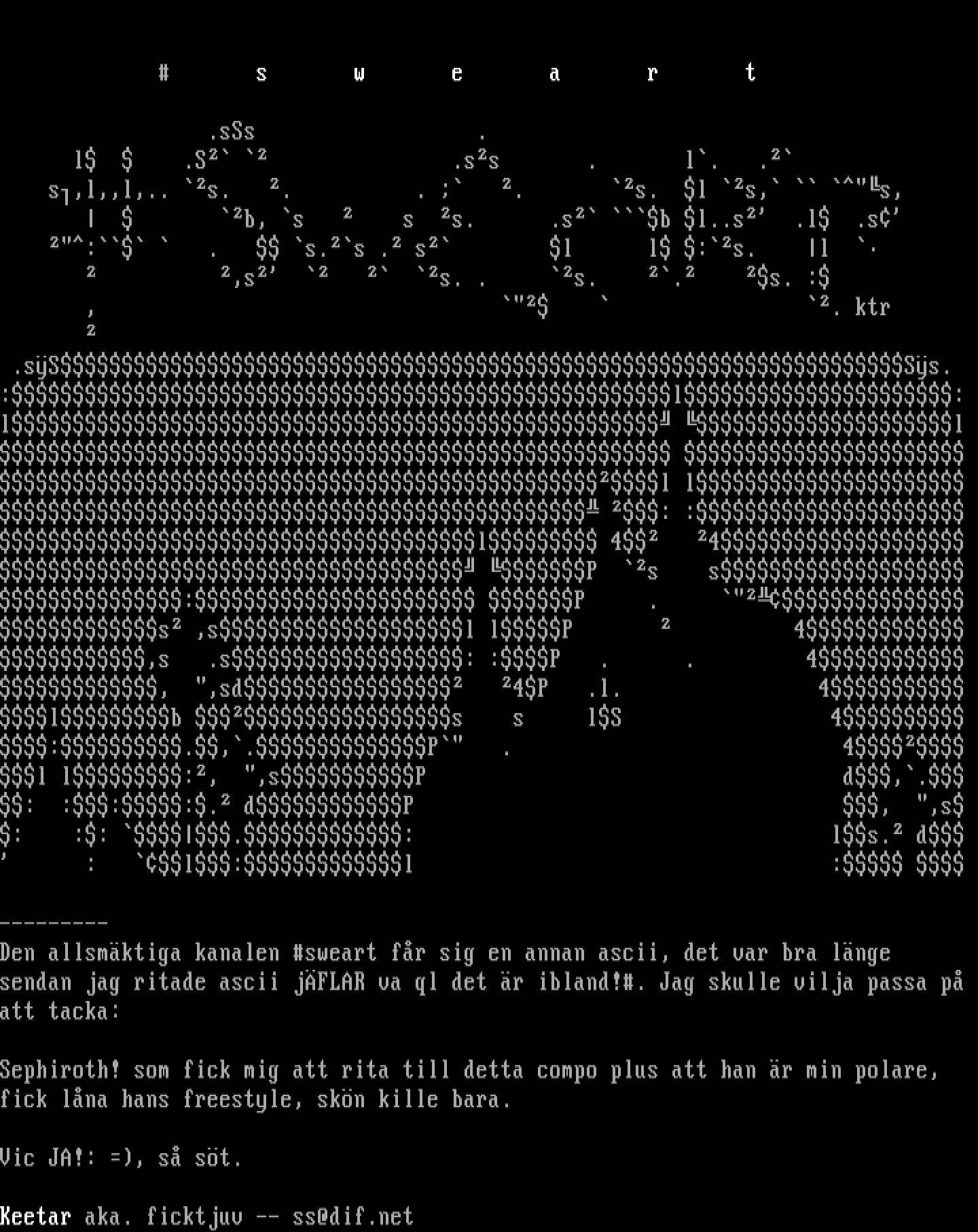 Den allsmktiga kanalen sweart fr sig en annan ascii, det var bra lnge