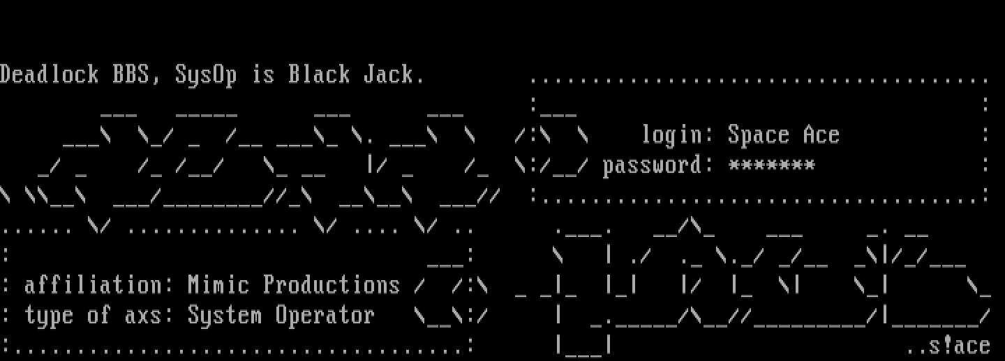 Deadlock BBS, SysOp is Black Jack. .....................................