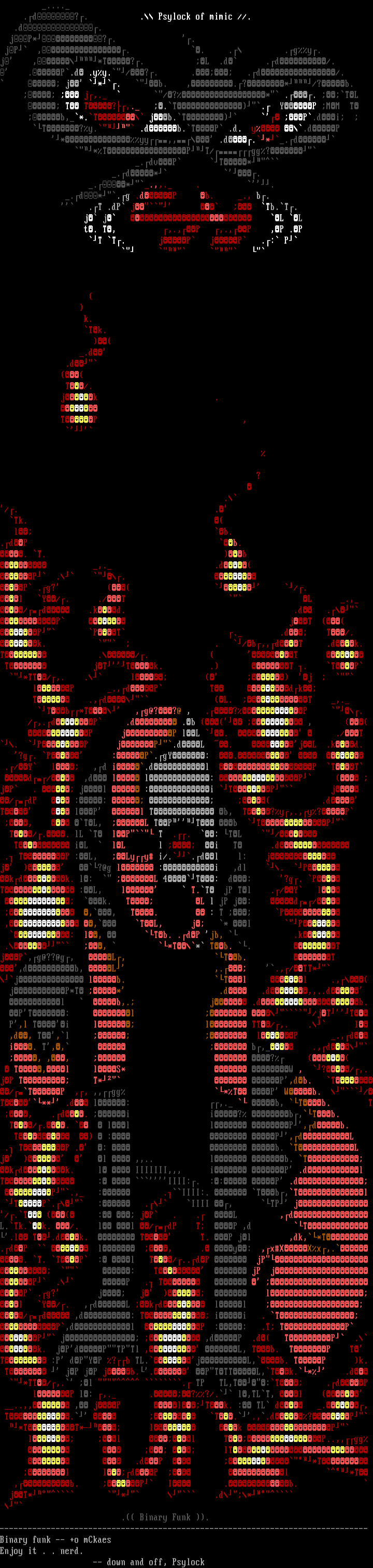 ------------------------------------------------------------------------------- Binary funk -- +o mCkaes