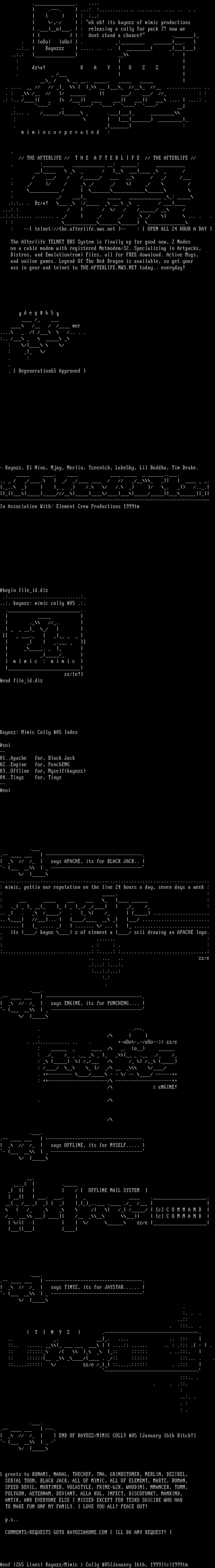 @eof 265 Lines Kayozz/Mimic Colly 05January 16th, 1999c1999tm