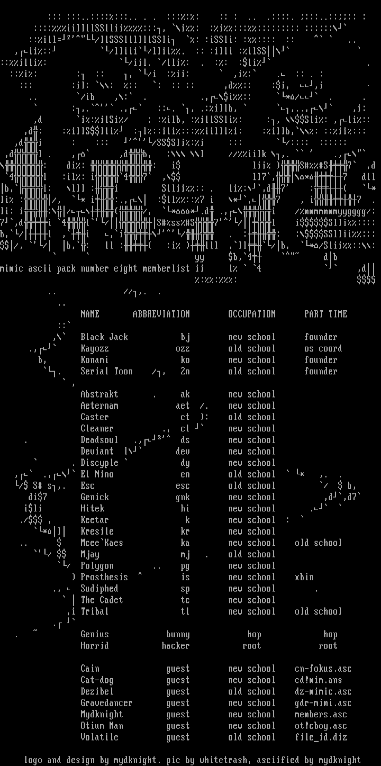 logo and design by mydknight. pic by whitetrash, asciified by mydknight