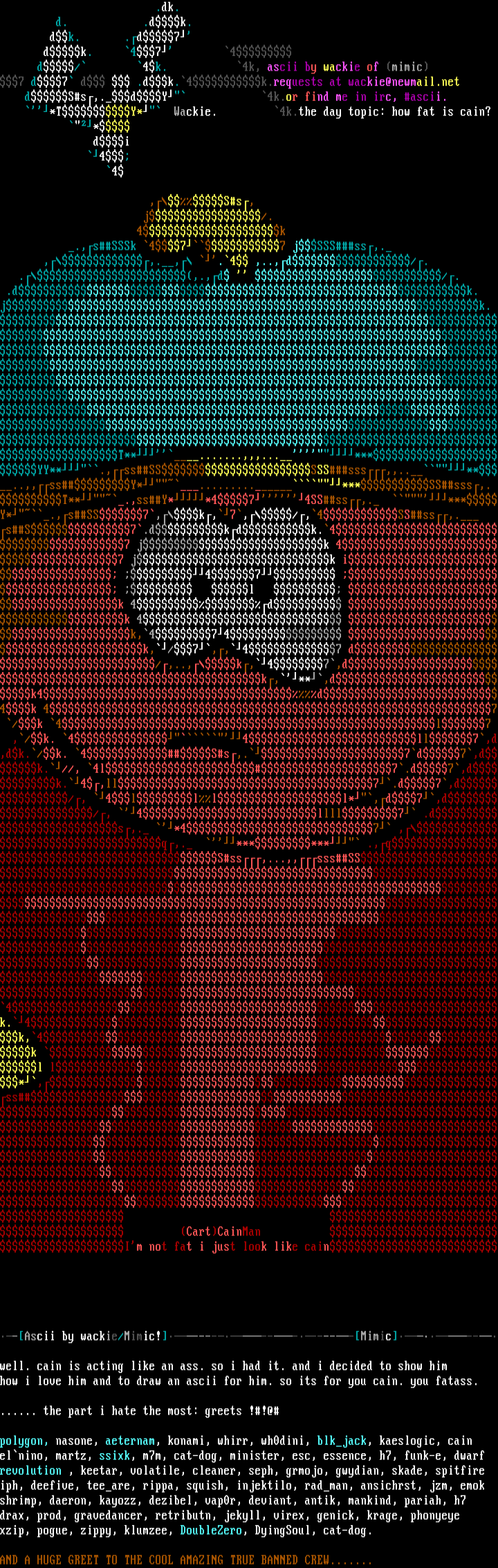 how i love him and to draw an ascii for him. so its for you cain. you fatass.