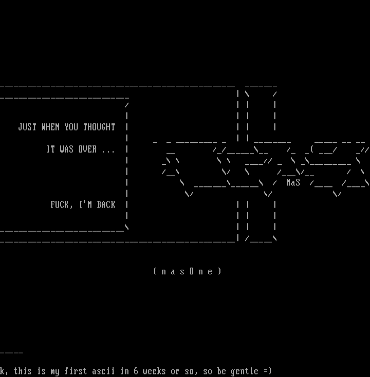k, this is my first ascii in 6 weeks or so, so be gentle