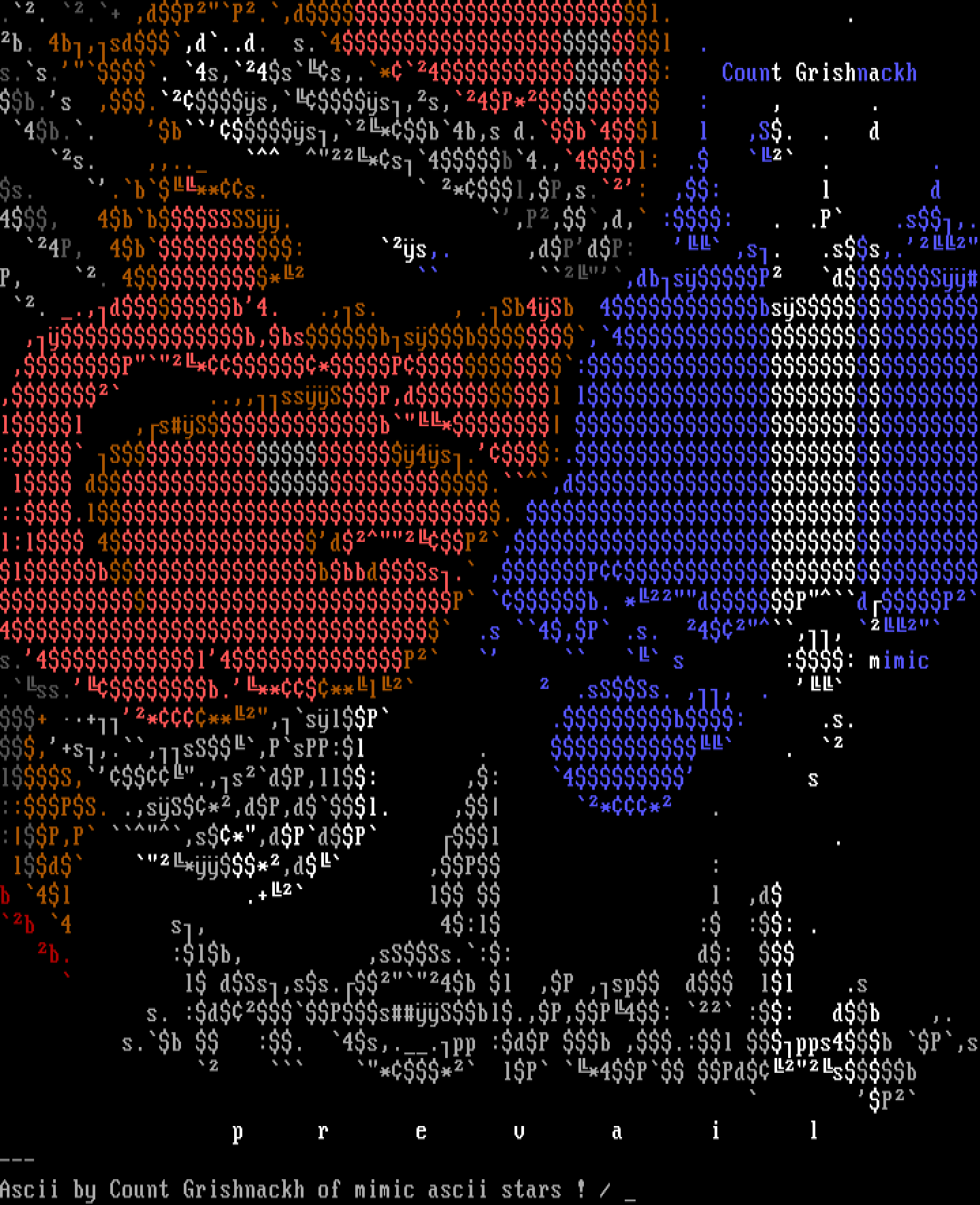 Ascii by Count Grishnackh of mimic ascii stars ! /