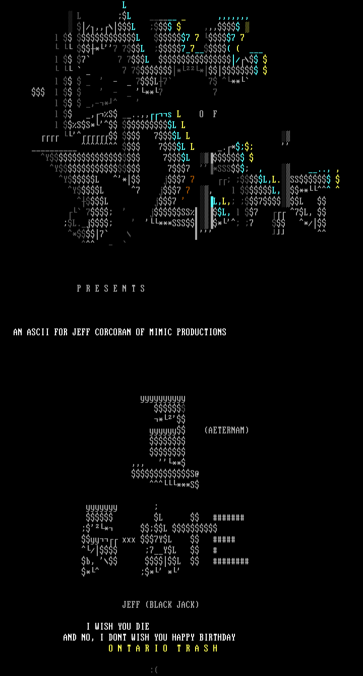 AN ASCII FOR JEFF CORCORAN OF MIMIC PRODUCTIONS