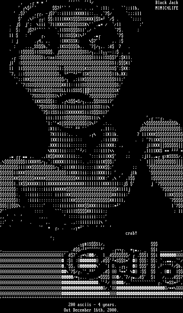 , .d/ .. *,. l ,l d7.*/. ld/ .l i :l : ,d*SS* : .,,./., l . ,, ,/b,7/. ,d ** : . l l/*,.. .,* /.7/,,d l /,..,d7./ /,. .*SS*,/./** 200 asciis - 4 years.
