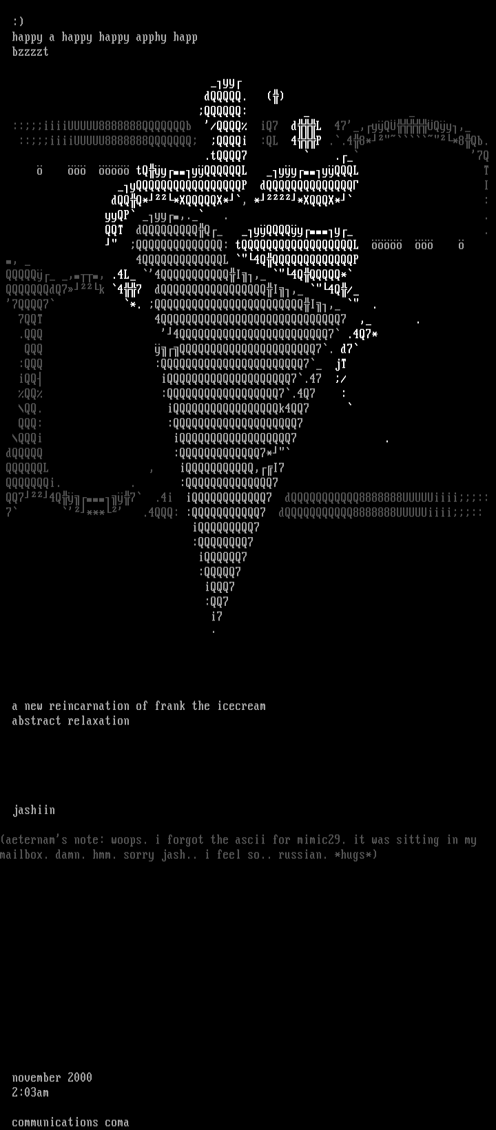 aeternams note: woops. i forgot the ascii for mimic29. it was sitting in my