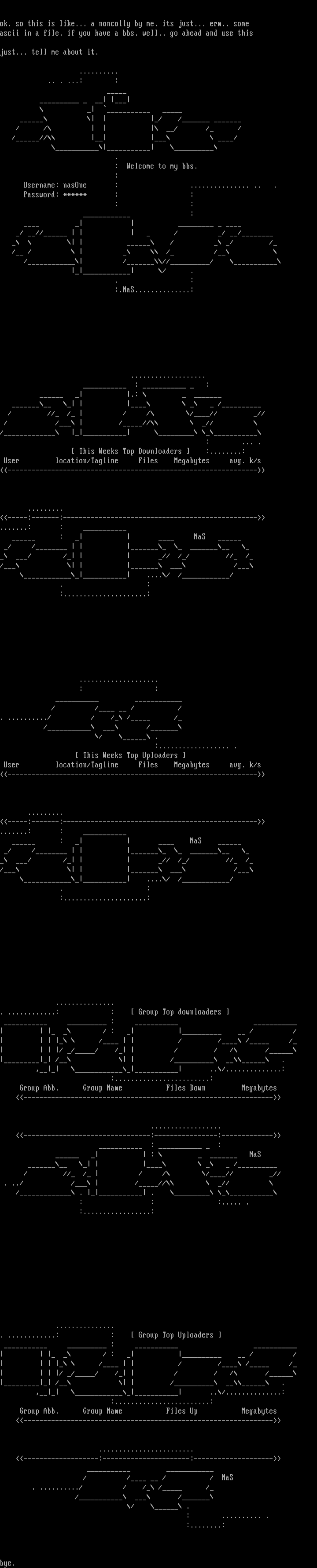 ascii in a file. if you have a bbs. well.. go ahead and use this