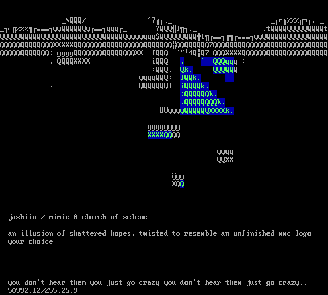 an illusion of shattered hopes, twisted to resemble an unfinished mmc logo