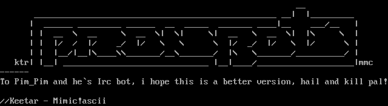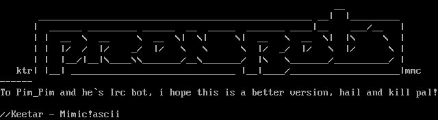 To PimPim and hes Irc bot, i hope this is a better version, hail and kill pal!