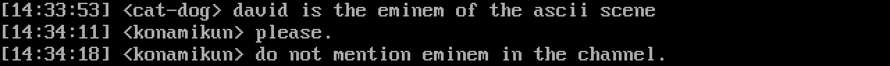 14:33:53 cat-dog david is the eminem of the ascii scene