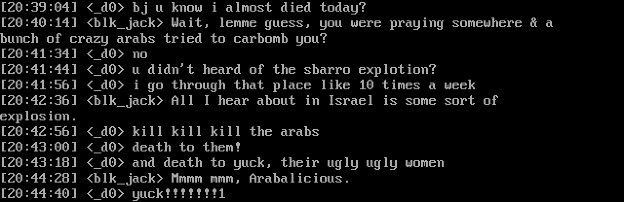 20:42:56 d0 kill kill kill the arabs