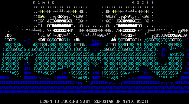 LEARN TO FUCKING SWIM. ZEROSTAR OF MiMiC ASCII.