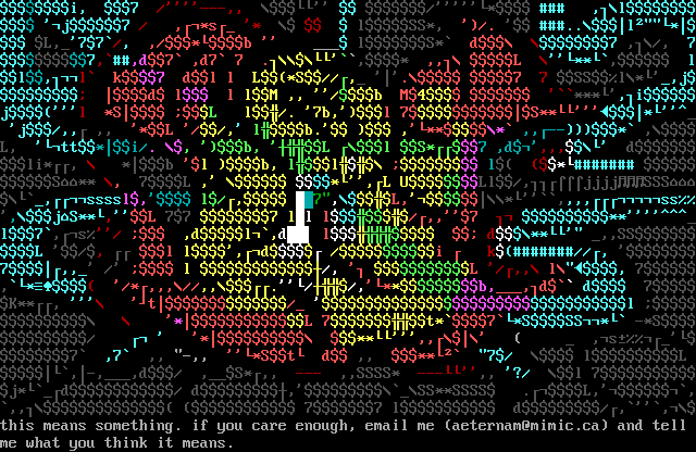 ,-,,d/ ,S*,, --- ,,SSSS* ---,, ?/ l 7j*d/ d,SS**SSSS .L,,,, 77 l d/,,this means something. if you care enough, email me aeternam@mimic.ca and tell