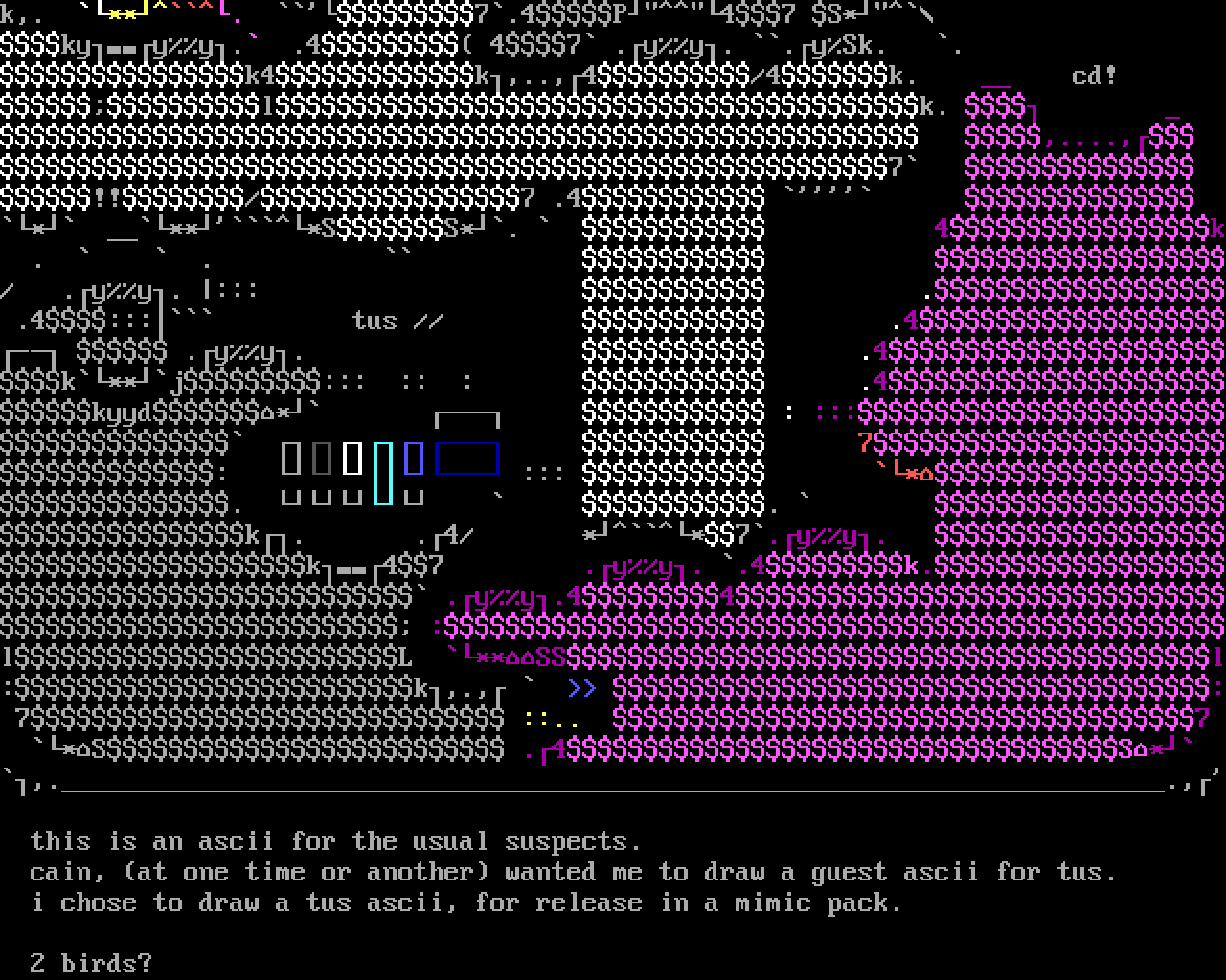 i chose to draw a tus ascii, for release in a mimic pack.
