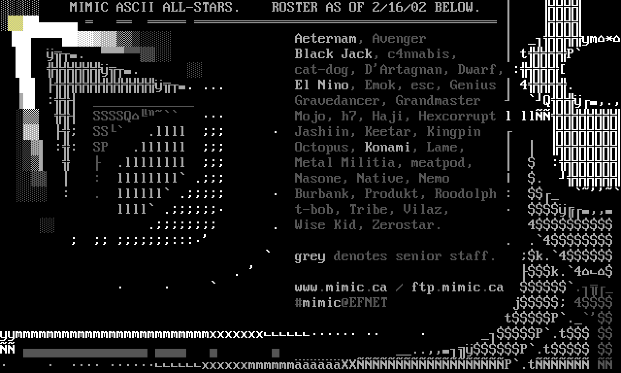 MIMIC ASCII ALL-STARS. ROSTER AS OF 2/16/02 BELOW.