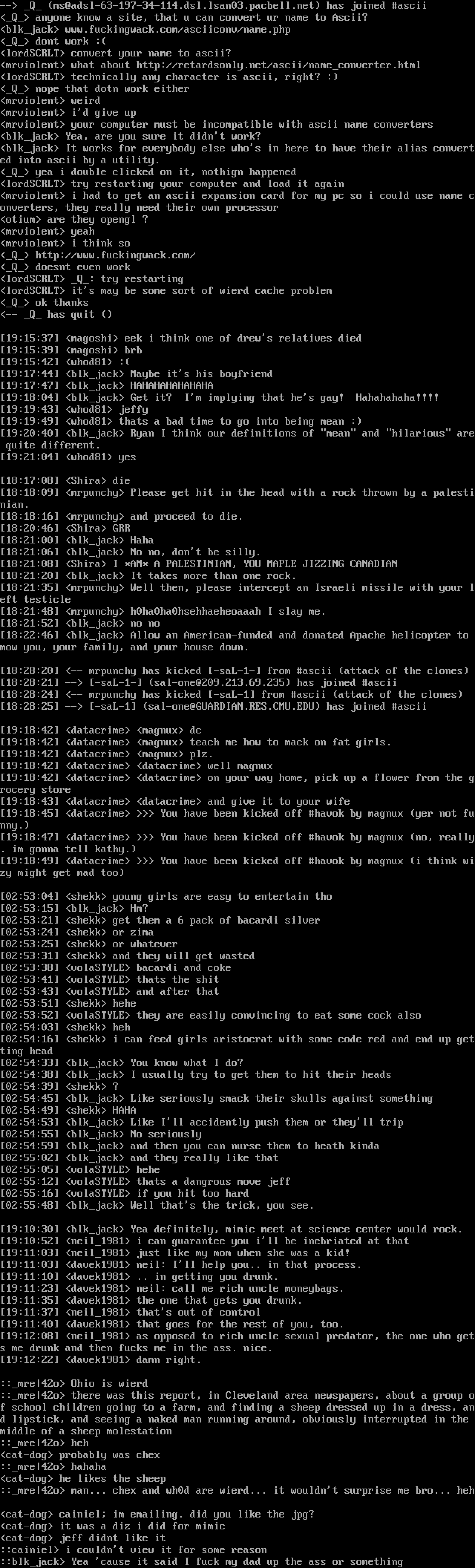 19:18:04 blkjack Get it? Im implying that hes gay! Hahahahaha!!!!