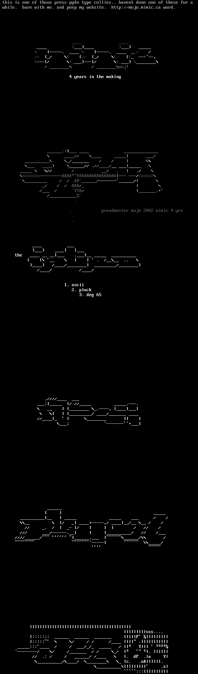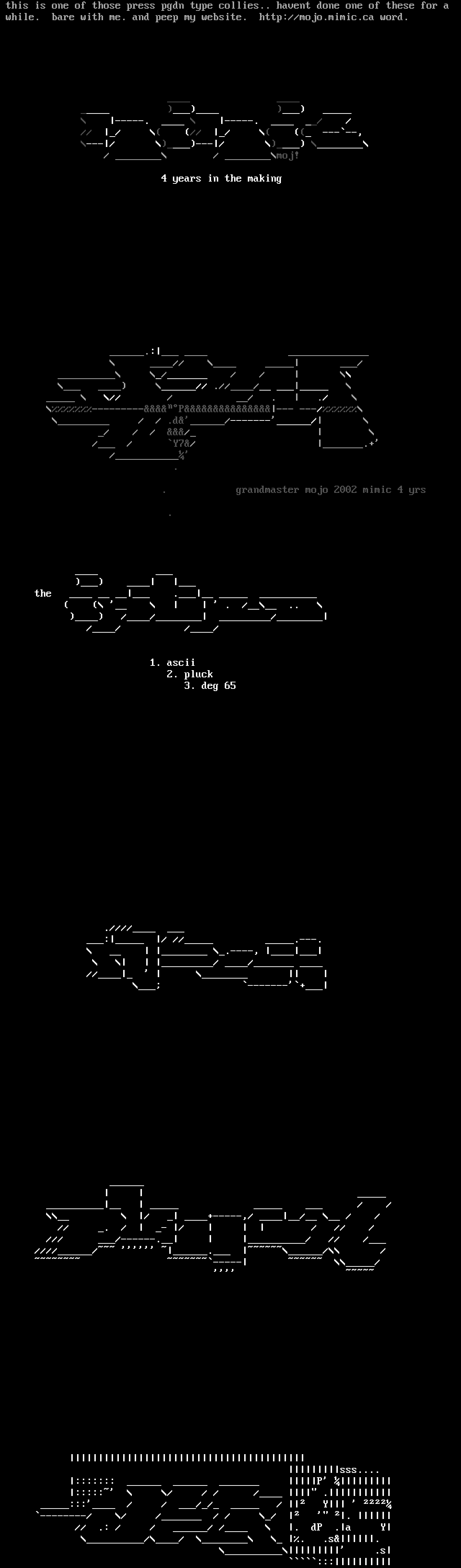 this is one of those press pgdn type collies.. havent done one of these for a while. bare with me. and peep my website. http://mojo.mimic.ca word.