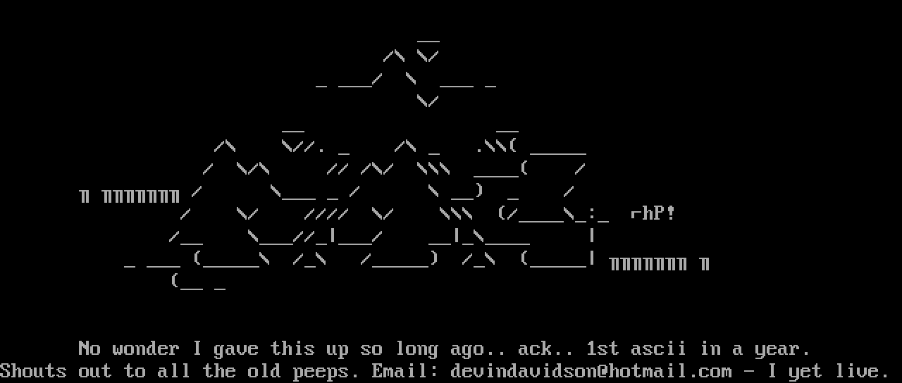 No wonder I gave this up so long ago.. ack.. 1st ascii in a year.