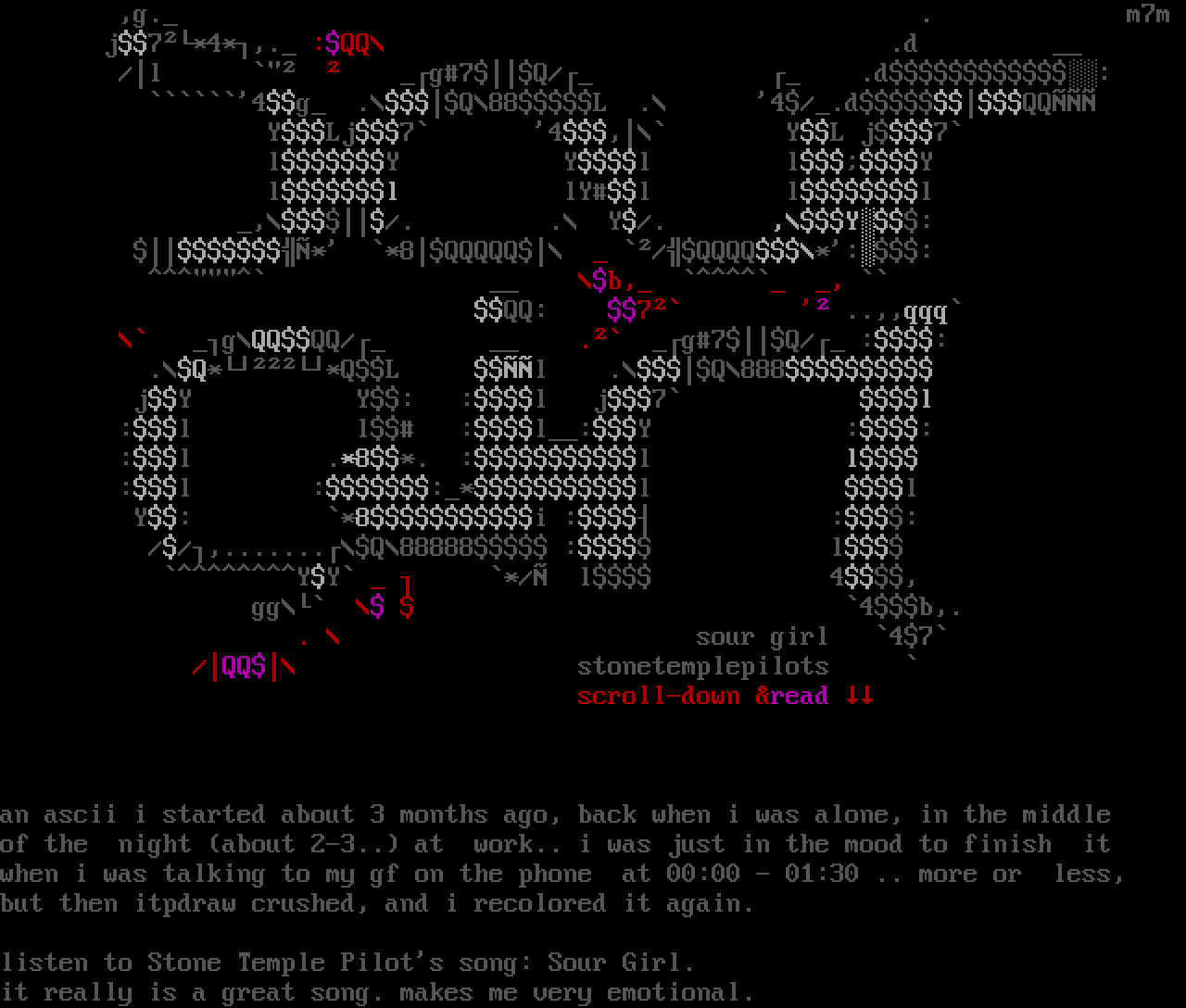 an ascii i started about 3 months ago, back when i was alone, in the middle