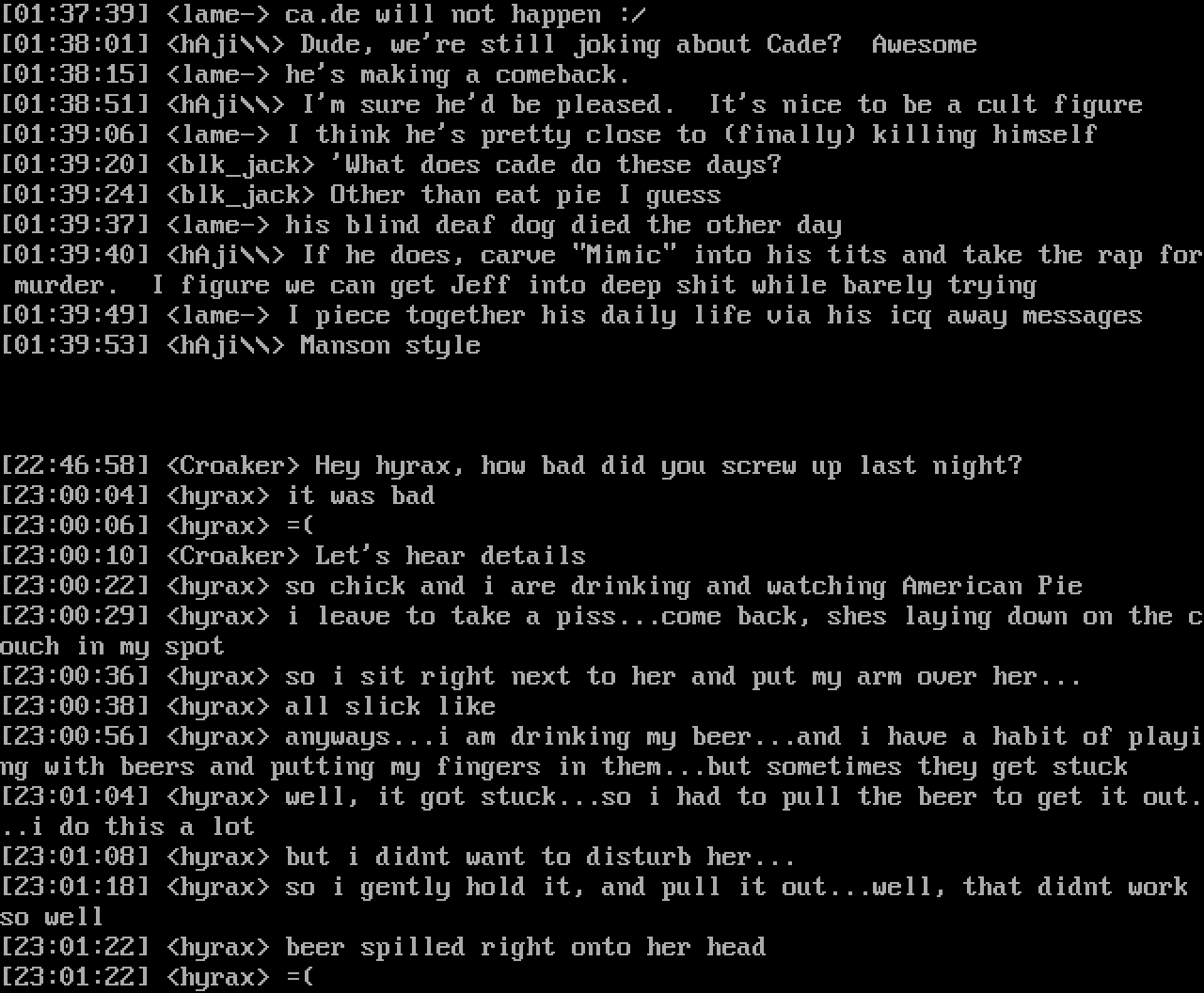 01:39:49 lame- I piece together his daily life via his icq away messages