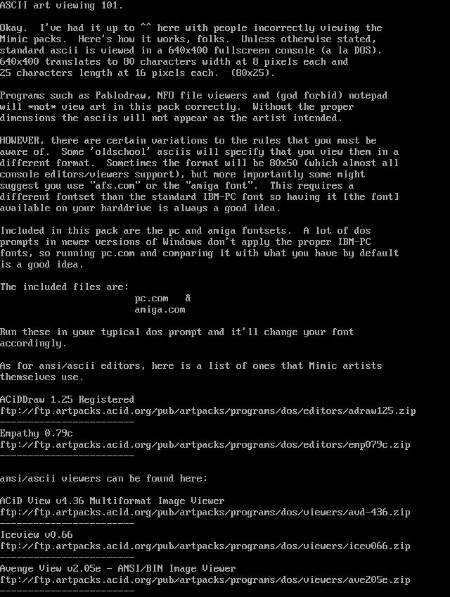 As for ansi/ascii editors, here is a list of ones that Mimic artists