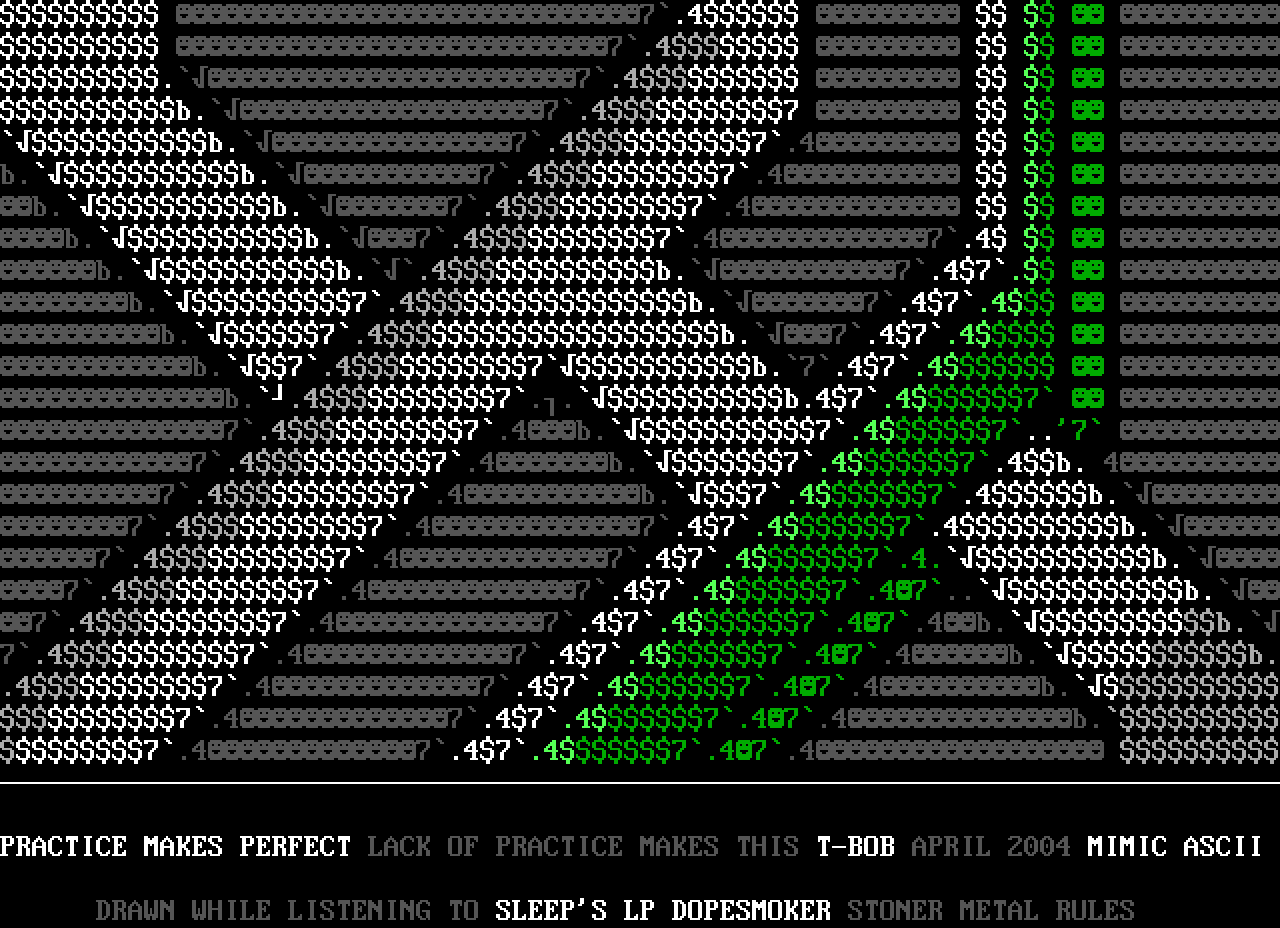 PRACTICE MAKES PERFECT LACK OF PRACTICE MAKES THIS T-BOB APRIL 2004 MIMIC ASCII