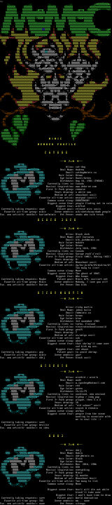 abstrakt (4) aeternam (1) barium (4) black jack (1) cat-dog (4) ddrj (6) dipswitch (1) discyple (20) h7 (2) haliphax (3) jashiin (4) jeffie (3) knocturnal (1) lame (4) m0lo (1) maytag (1) mimic ascii (6) nstage (1) potzkoten (1) ricky martin (1) roodolph (1) shrimp (2) tribe (1) wise kid (1)