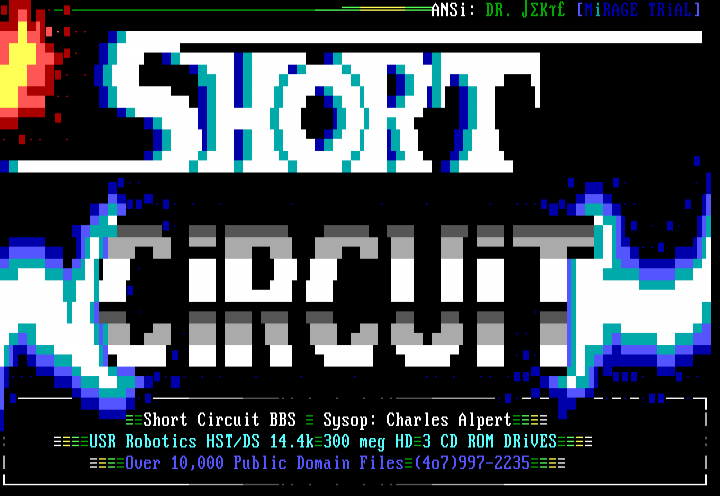 Short Circuit BBS Sysop: Charles Alpert : USR Robotics HST/DS 14.4k