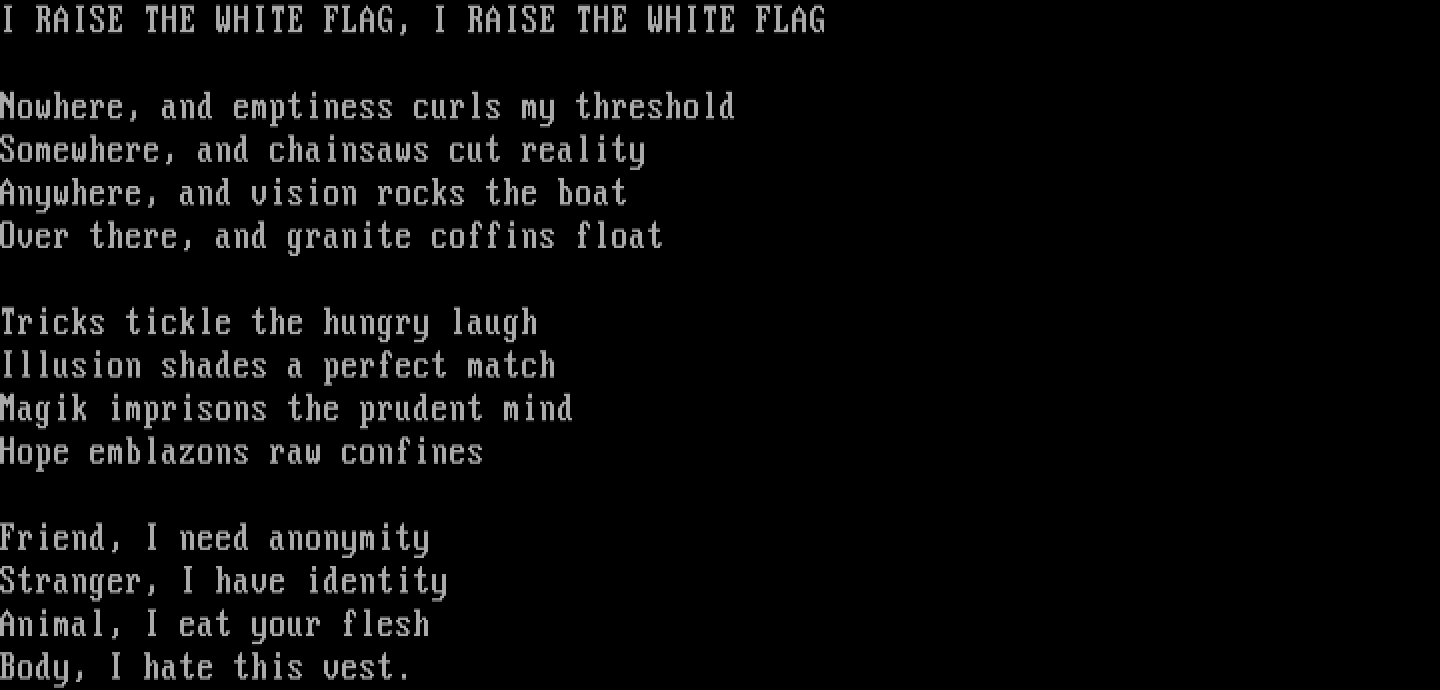 - I RAISE THE WHITE FLAG, I RAISE THE