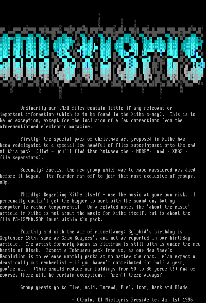 - Cthulu, El Mistigris Presidente, Jan 1st 1996