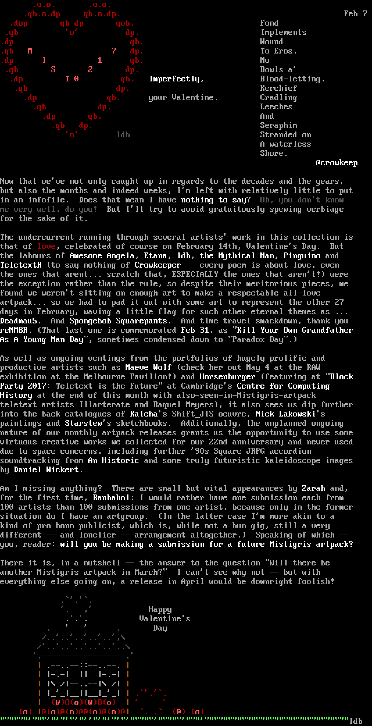 teletext artists Illarterate and Raquel Meyers, it also sees us dip further