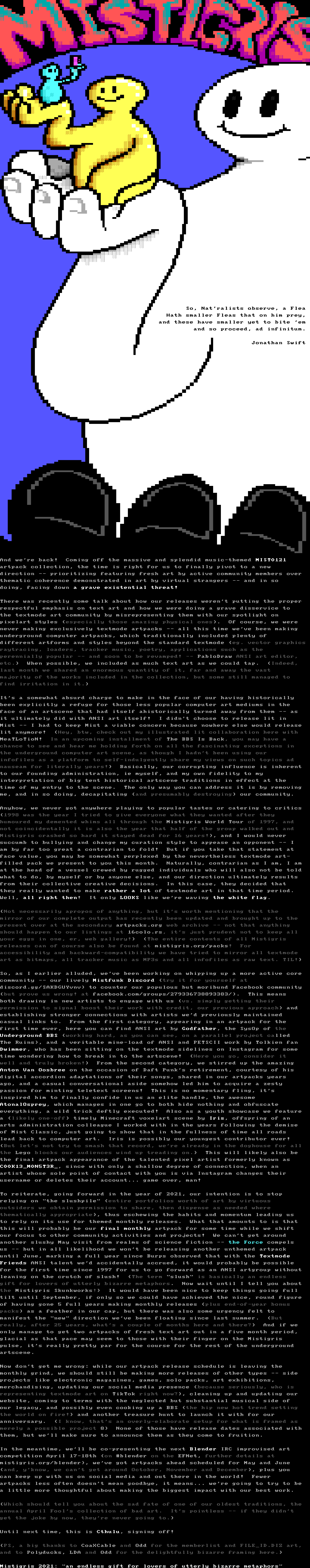 face value, you may be somewhat perplexed by the nevertheless textmode art-