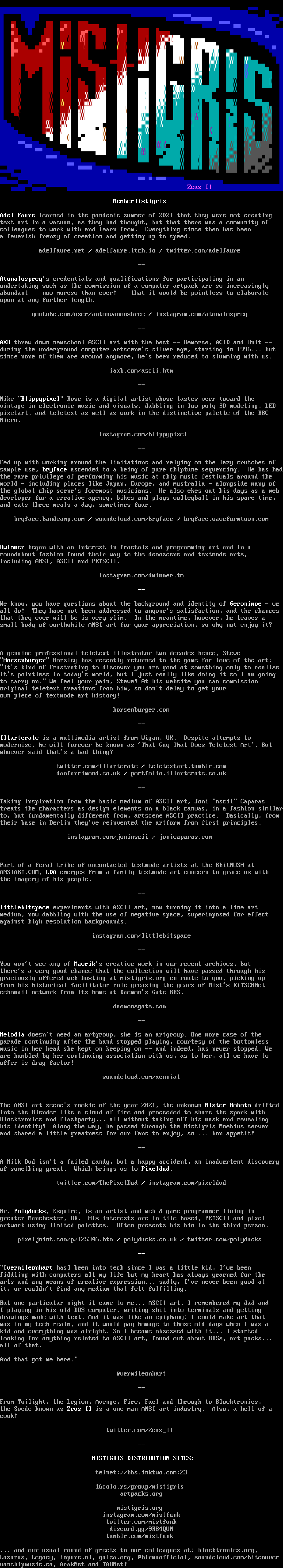 Part of a feral tribe of uncontacted textmode artists at the 8bitMUSH at