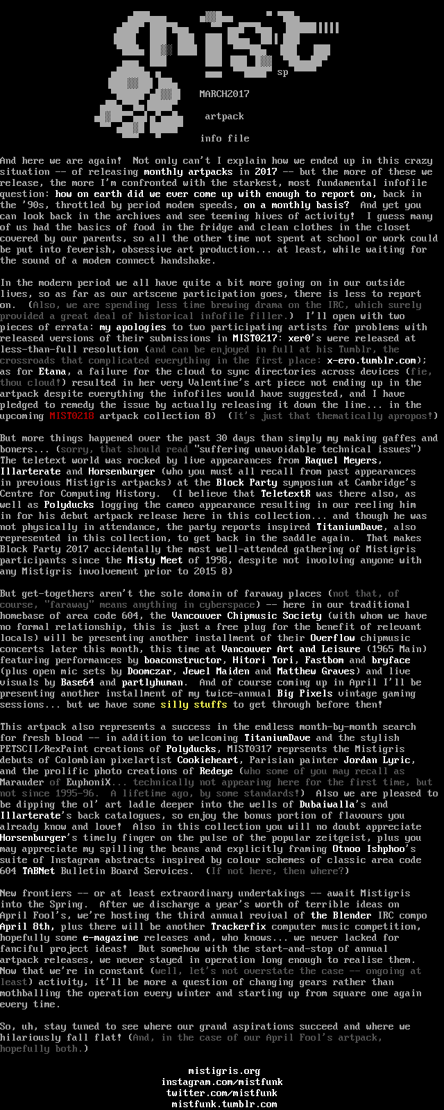 PETSCII/RexPaint creations of Polyducks, MIST0317 reprsents the Mistigris