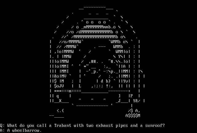 Q: What do you call a Trabant with two exhaust pipes and a sunroof?