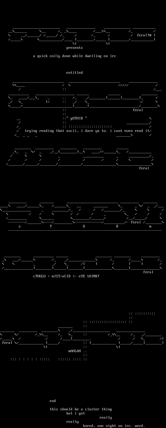 / trying reading that ascii, i dare ya to. i cant even read it/