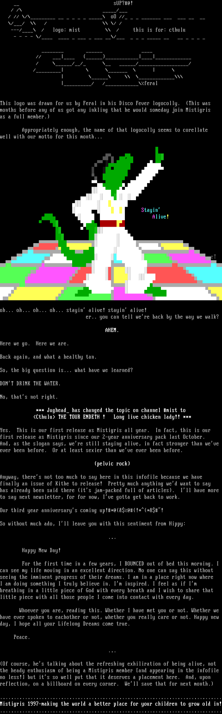 the heady enthusiasm of being a Mistigris member and appearing in the infofile