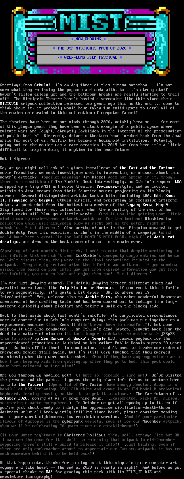 whipped up a tiny ANSI art movie theatre, Tradewars-style, and we invited