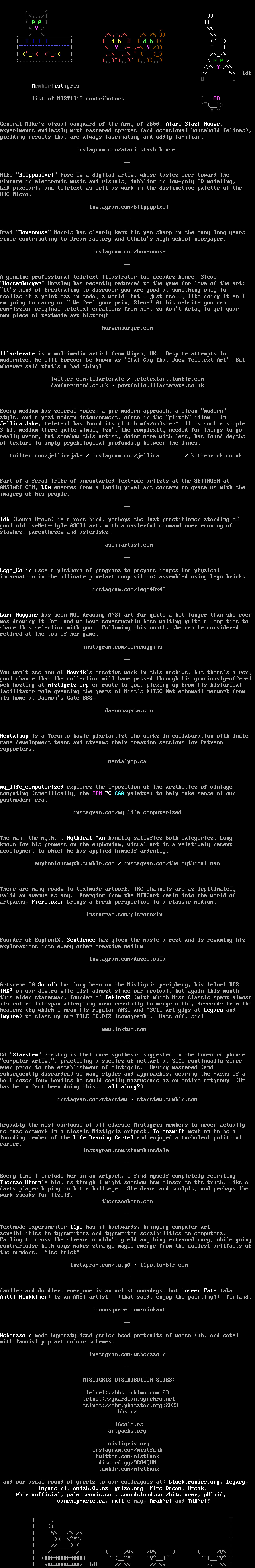 Part of a feral tribe of uncontacted textmode artists at the 8bitMUSH at